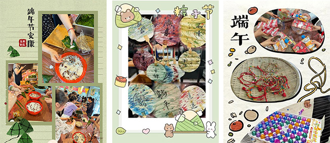 慶祝活動包括包粽子、DIY漆扇、端午香囊、五彩紅繩、驚喜砸蛋等,內容豐富多彩,氣氛熱烈溫馨,現場不時傳來陣陣掌聲、歡笑聲。