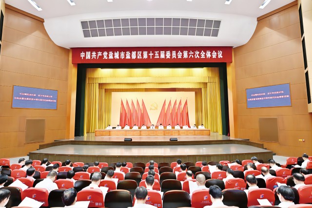全會審議通過《中國共產黨鹽城市鹽都區第十五屆委員會第六次全體會議決議》。