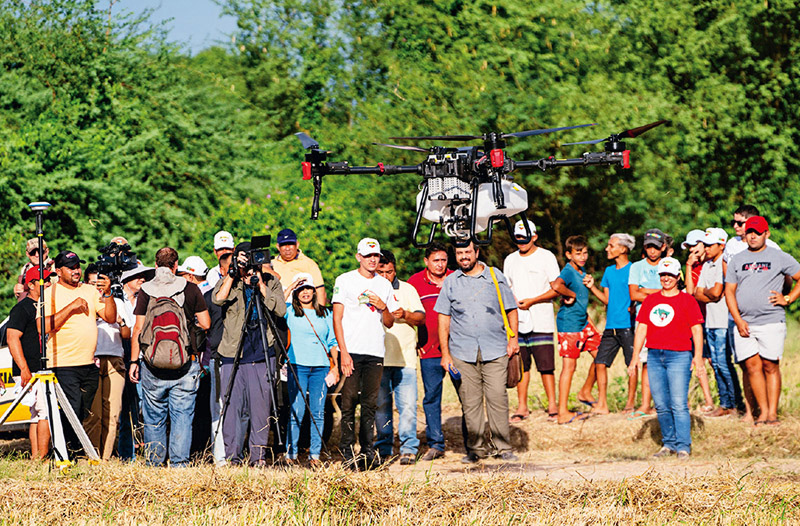 當(dāng)前,經(jīng)濟(jì)全球化動(dòng)力和阻力膠著,但動(dòng)力仍然勝過(guò)阻力。中國(guó)呼吁各方攜手推動(dòng)普惠包容的經(jīng)濟(jì)全球化,更好惠及不同國(guó)家、不同群體。圖為2024年2月2日,在巴西阿波迪舉行的中巴農(nóng)業(yè)機(jī)械化合作示范項(xiàng)目啟動(dòng)儀式上,人們觀看一款中國(guó)生產(chǎn)的農(nóng)用無(wú)人機(jī)。 新華社記者 王天聰/攝