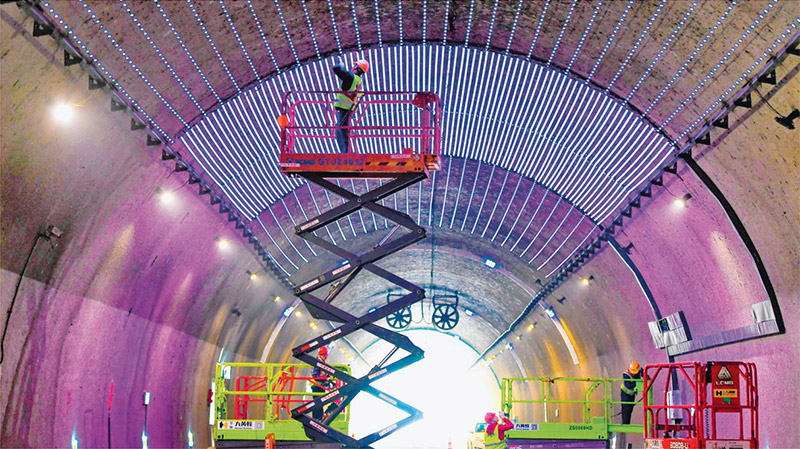 我國投資潛力和空間依然巨大,今年政府投資規模繼續擴大。圖為2025年4月21日,江西省新余市智慧繞城建設工程國道G533仰天崗隧道段,工人正在安裝智慧交通設施。 人民圖片 趙春亮/攝